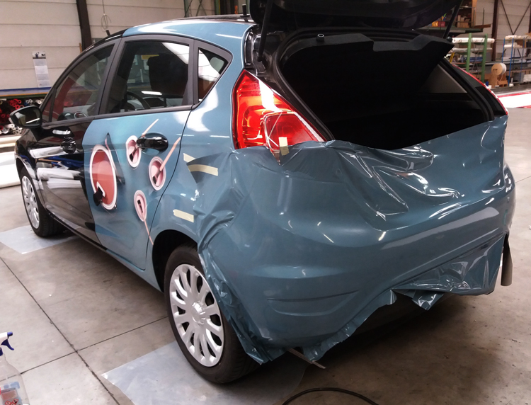 Geprinte net voorzien van coating ter 50% verdoezeling van nutsvoorzieningen